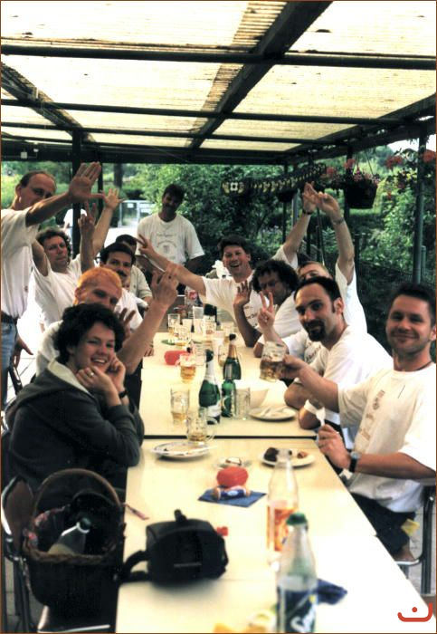 Bilder vom entscheidenen Auswärtsspiel bei Olympi II (1:3-Sieg am 14.05.2000) und Abschluß-bzw.Aufstiegsfeier im Gartenverein am 01.06.2000.